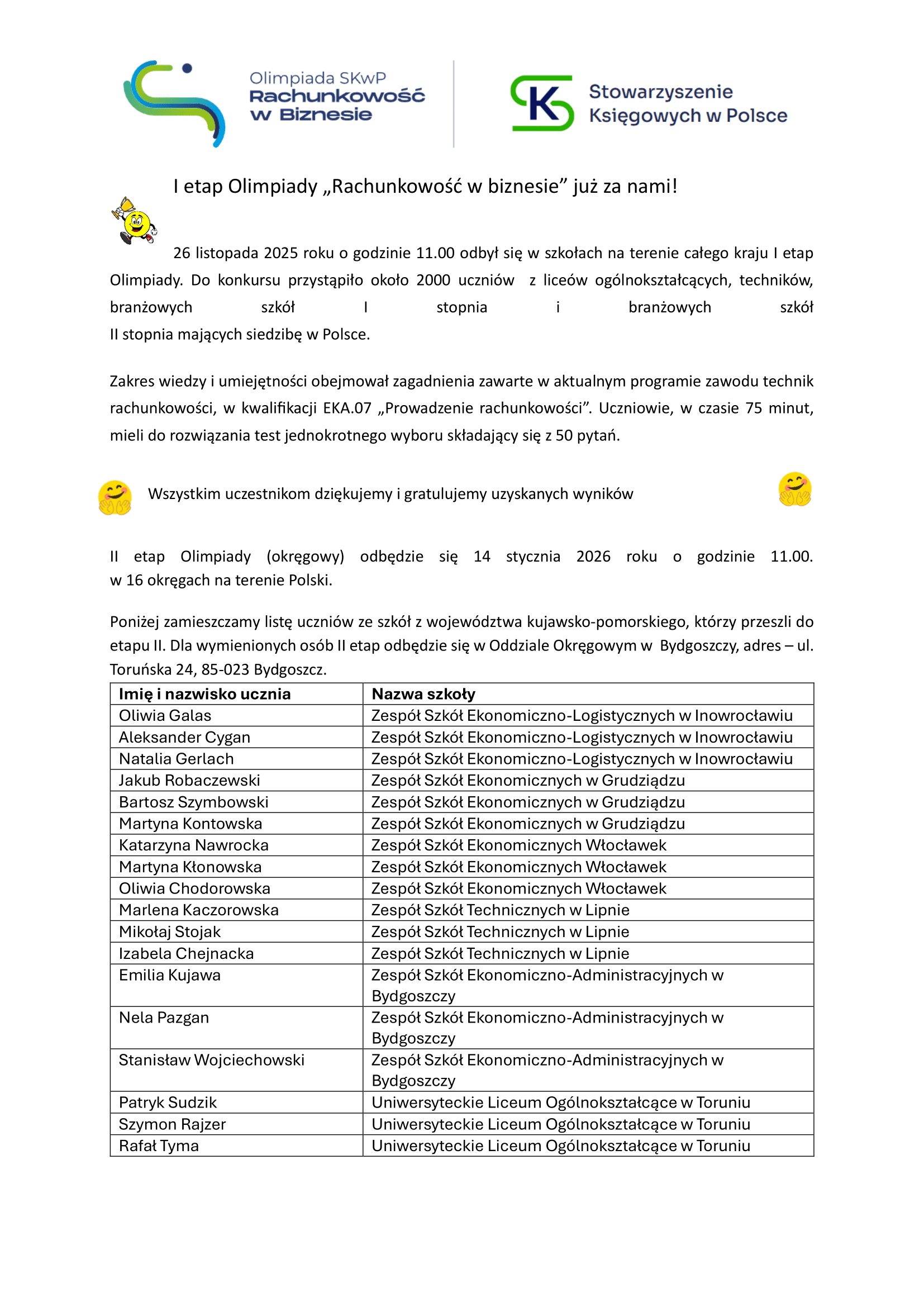 I etap Olimpiady „Rachunkowość w biznesie” już za nami!